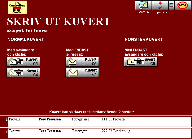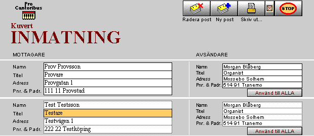Dock kan även manuell inmatning av uppgifter för kuvertutskrifter