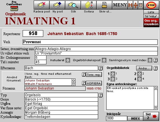 repertoarnummer, hämta in uppgifter från registret "Orgelmusik"