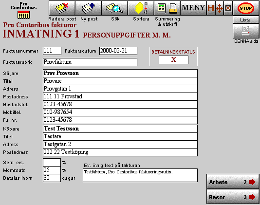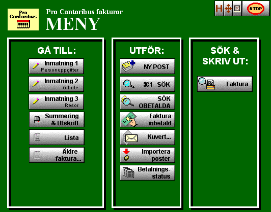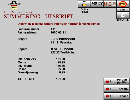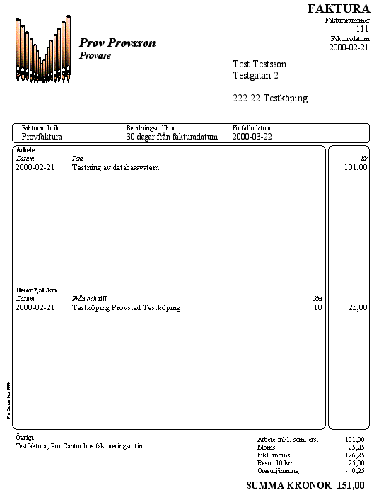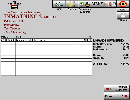 PRO CANTORIBUS FAKTUROR Allmän faktureringsrutin för t. ex. övertid eller arbete utanför tjänsten. Även möjlighet att fakturera semesterersättning, moms m. m.